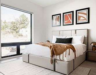 Thoughtfully curated modern, minimalist art brings each space to life while creating a tranquil environment. A refined selection of organic décor creates a soothing sanctuary-like setting in the heart of Denver. Still, swank city energy and innovation resonate from the stone waterfall countertops and top-of-the-line stainless steel appliances and laundry set.