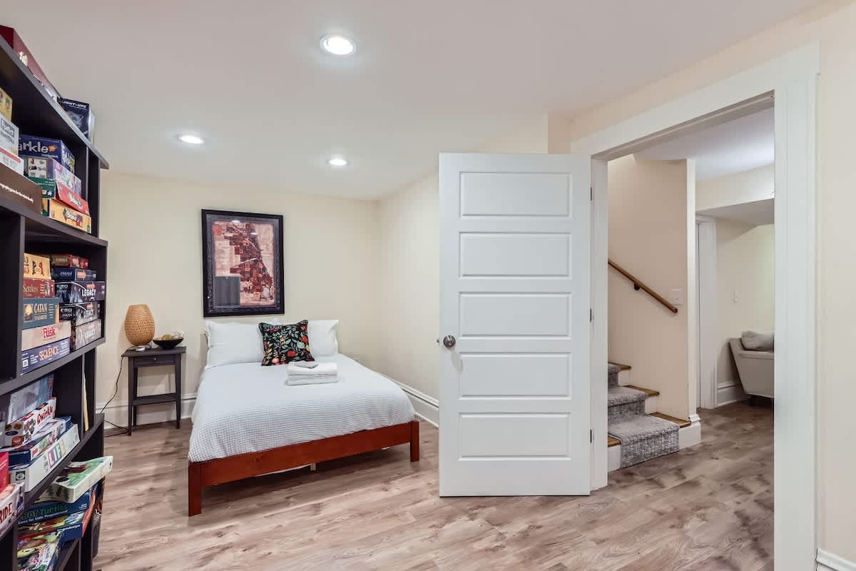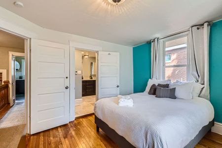 Spacious and stylish 4-bedroom home in the heart of Congress Park, perfect for 30+ day stays. Features include a dedicated workspace, a fun third-floor playroom for kids, and a fully fenced yard for pets to roam freely. Enjoy the convenience of a garage for one vehicle, modern furnishings, and a walkable location near parks, shops, and dining. Ideal for families or professionals seeking comfort and space in one of Denver’s most charming neighborhoods.