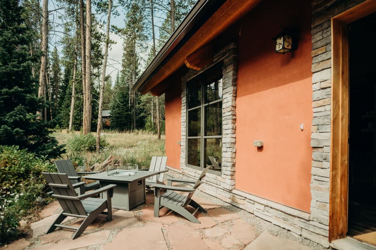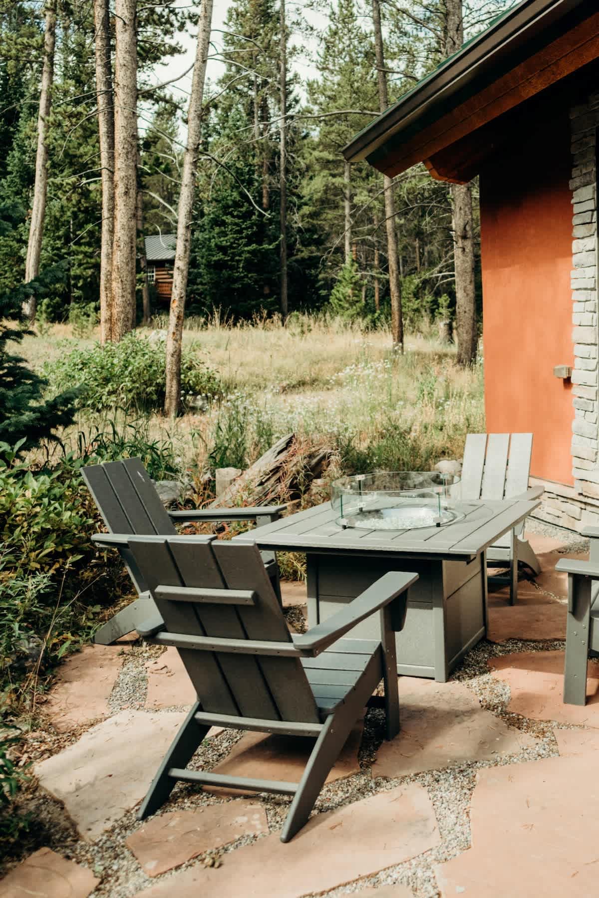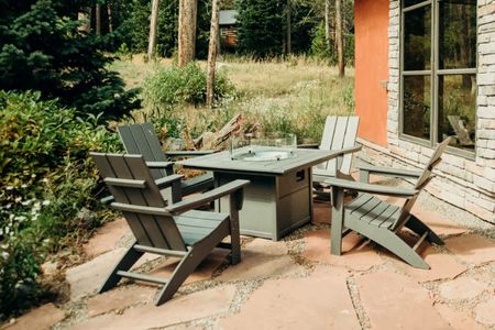 • Outdoor space features patio furniture, a grill, and a fire table