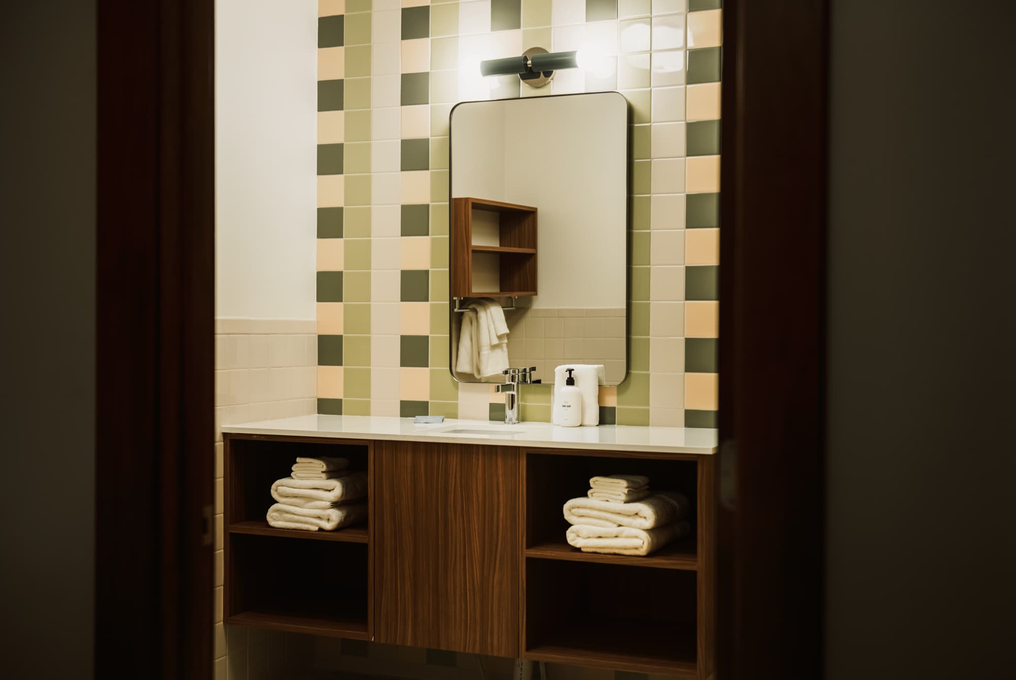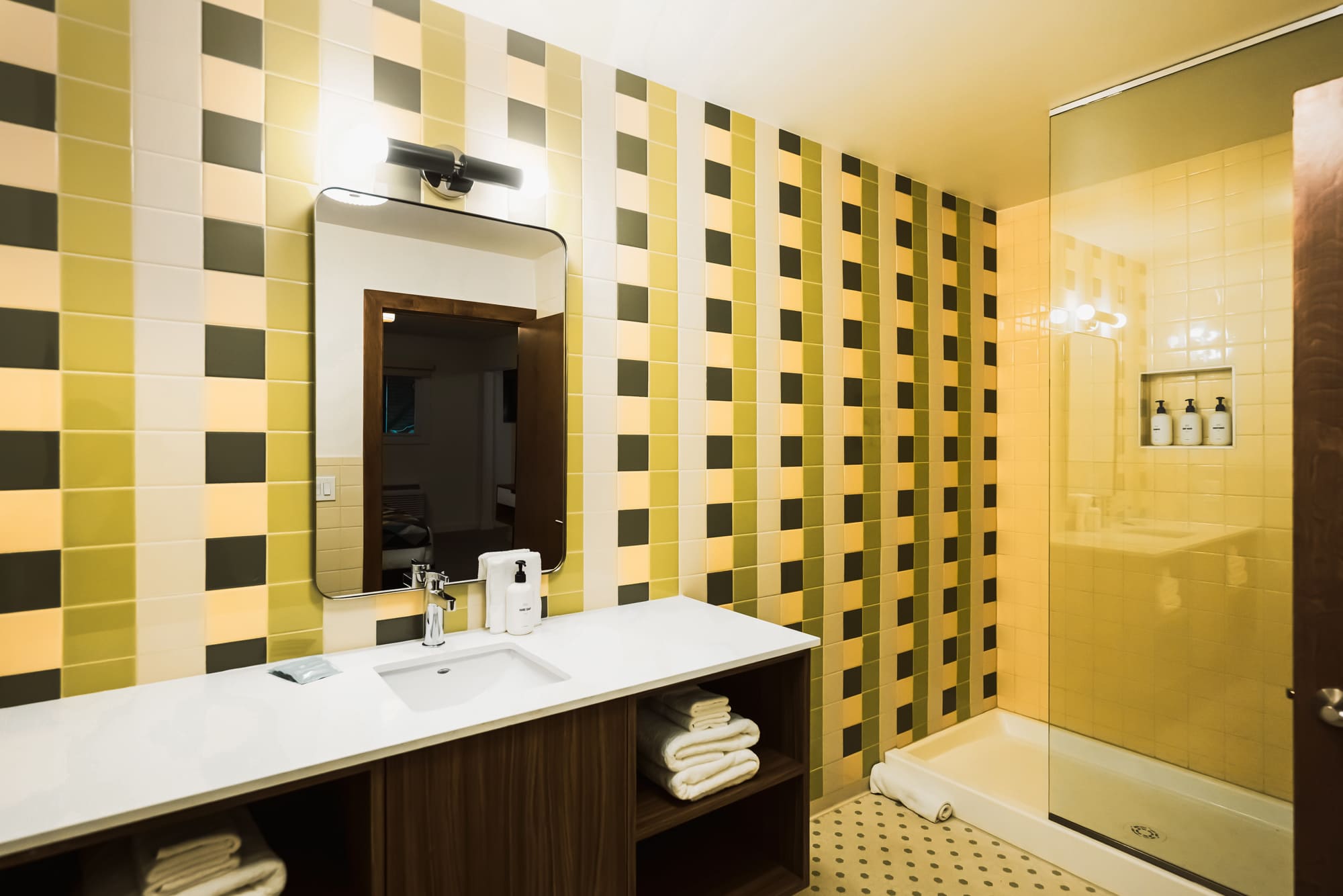 Immerse yourself in Denver’s past and present in this stunningly restored king suite at the reinvented La Vista Motel — originally opened in 1956 and thoughtfully brought into the modern era. The space blends mid-century character with today’s comfort, featuring vibrant landscape wallpapers, retro-inspired tilework, and all the amenities you need for a seamless stay.
