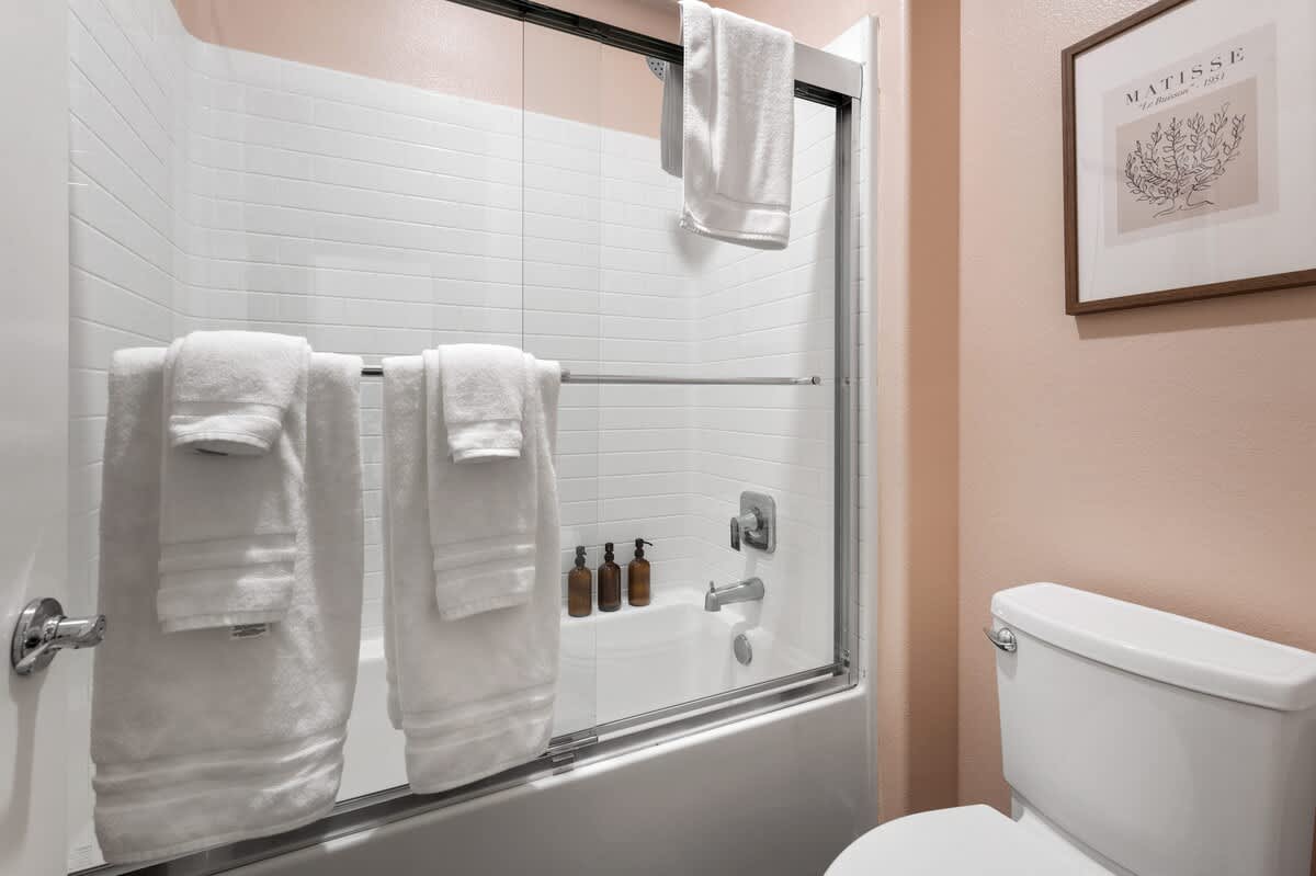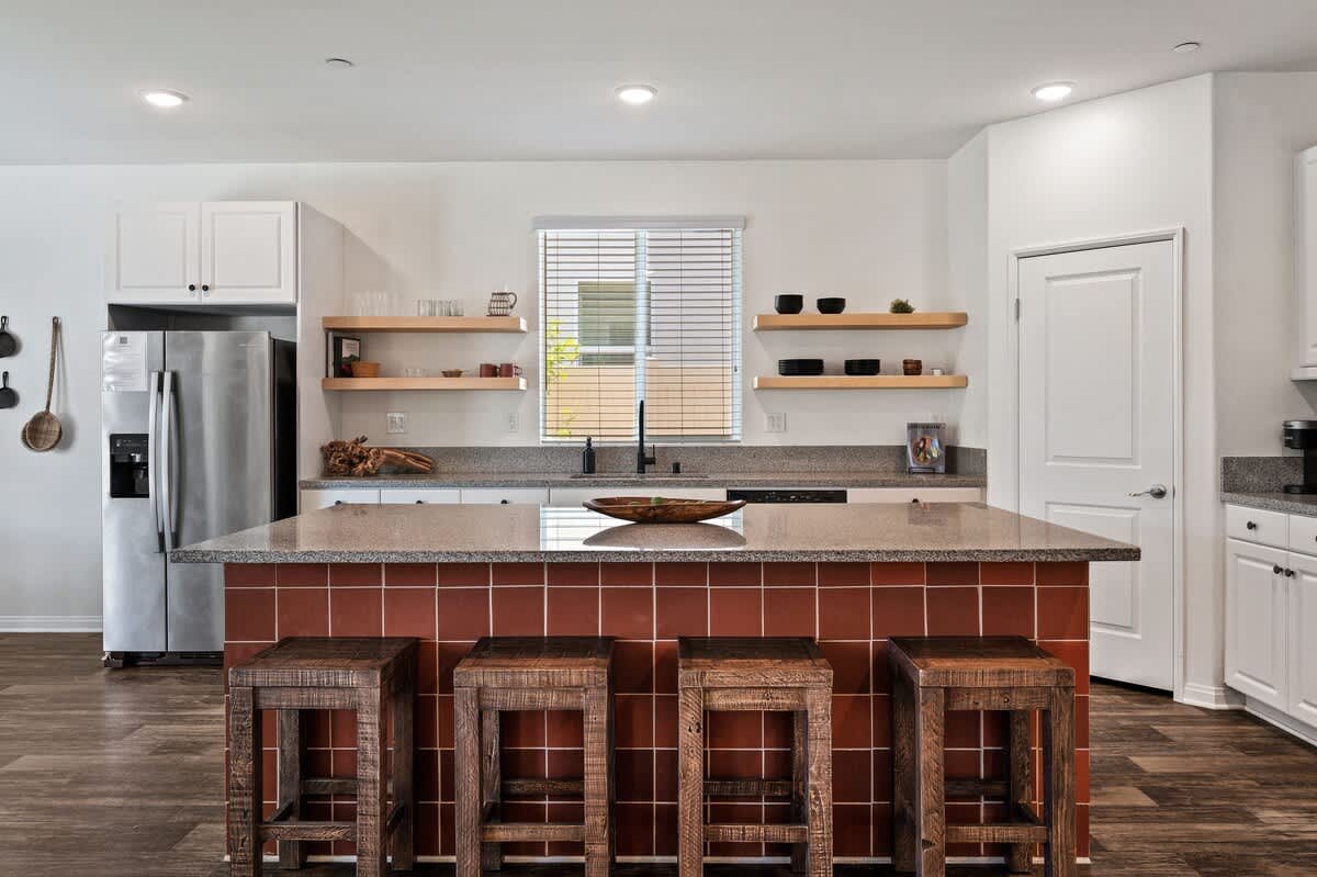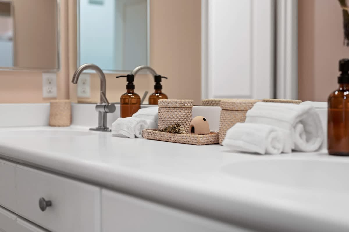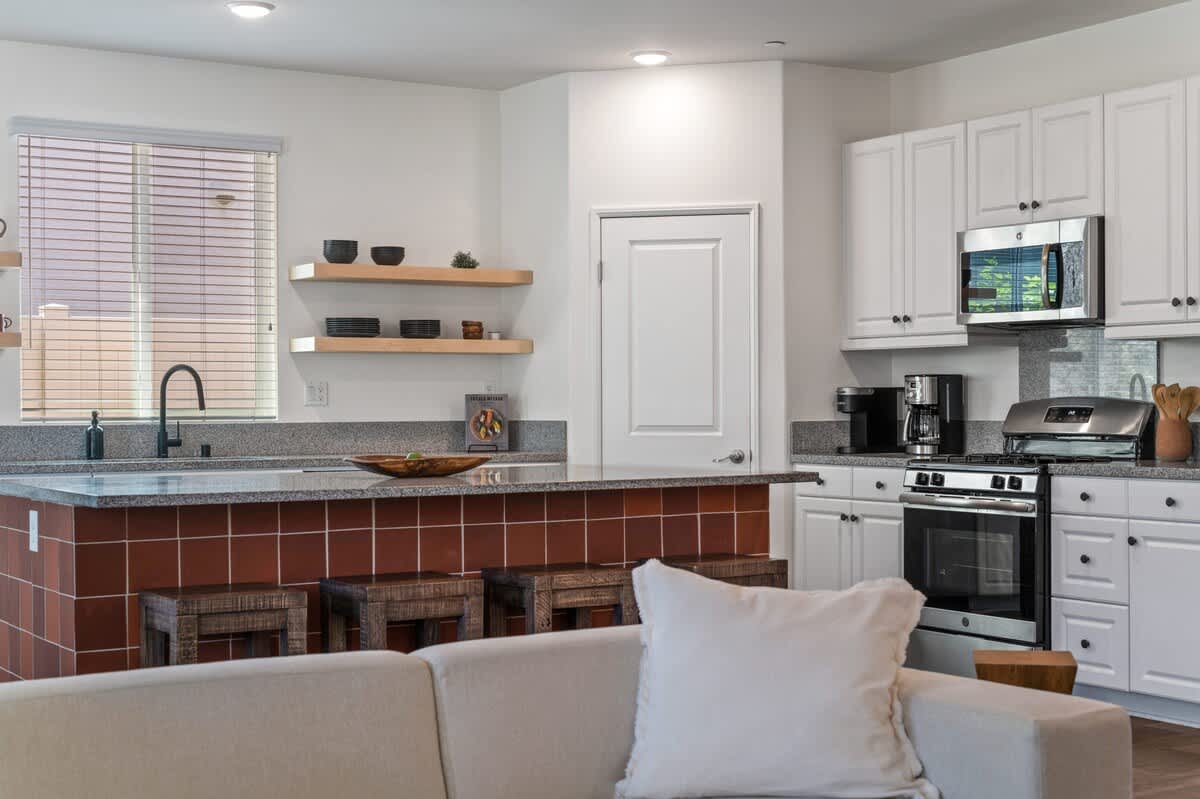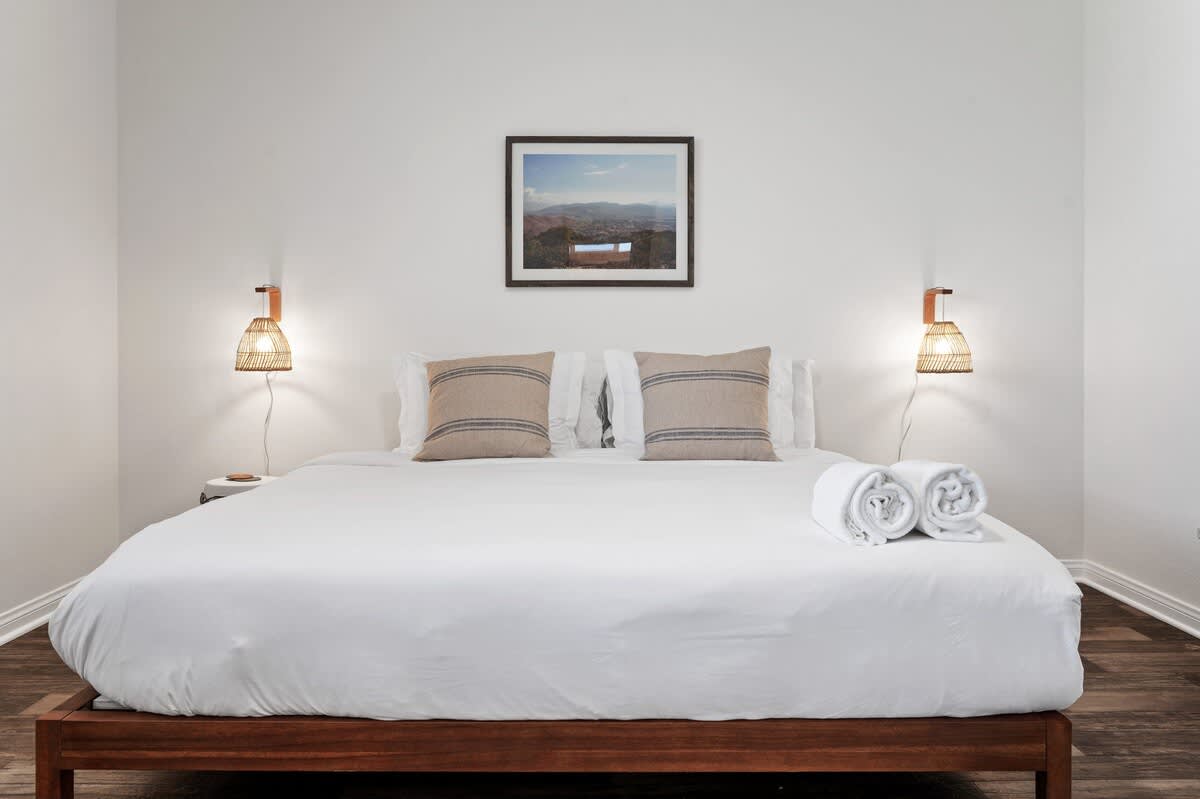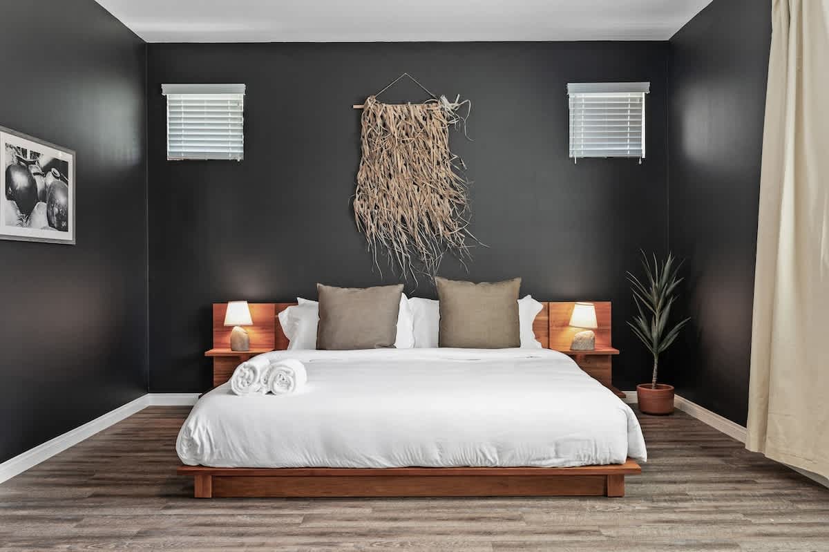 The interior of the home is newly renovated with vibrant warm walls, dimmable lighting throughout, high quality furnishing, tasteful art and decor, and thoughtful design choices. Above all, we prioritize comfort and quality for our guests, from mattresses and pillows (SweetNight) to sofas, lounge chairs, and lighting. Each bedroom is designed for maximum comfort with hotel-quality bedding and considerate touches including, smart TVs, luggage racks, bedside tables, lighting, and plug-ins. The home was built in 2018 and features upgraded fixtures, stainless steel appliances, and modern flooring.