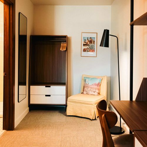 Experience a piece of Denver history in this beautifully restored king room at the newly reimagined La Vista Motel.