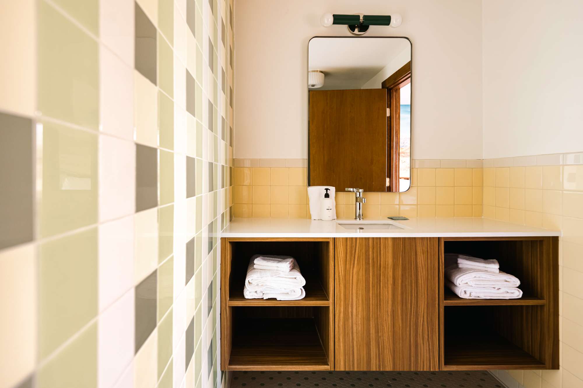 Immerse yourself in Denver’s past and present in this stunningly restored room at the reinvented La Vista Motel — originally opened in 1956 and thoughtfully brought into the modern era. The space blends mid-century character with today’s comfort, featuring vibrant landscape wallpapers, retro-inspired tilework, and all the amenities you need for a seamless stay.