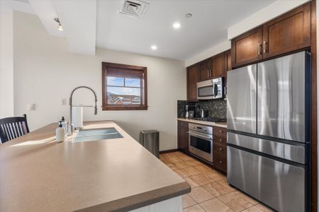 Great location! A bit tricky to find entrances, and parking more than one car is a challenge in busy seasons. The alloted garage parking space would be tricky with a Suburban.