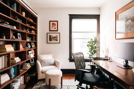 • Study with desk, chair, and monitor