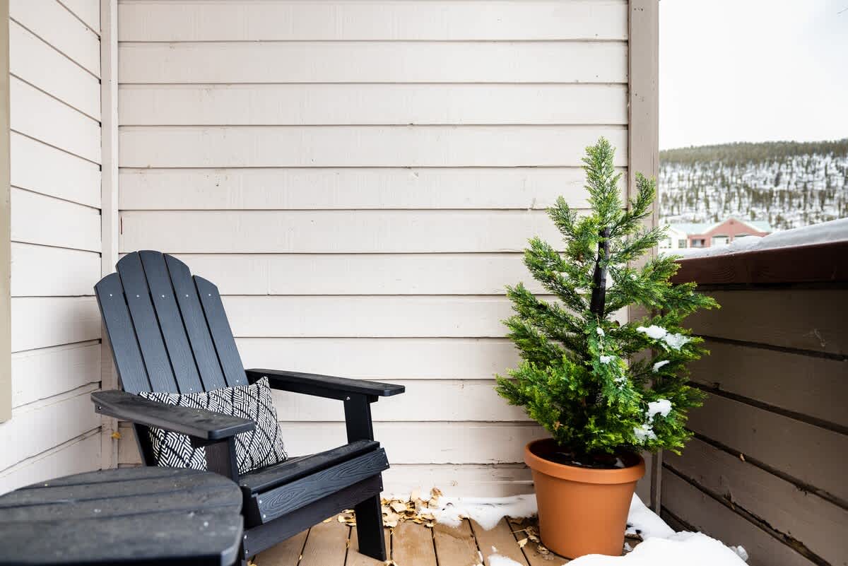 • Patio with Adirondack chairs and outdoor dining