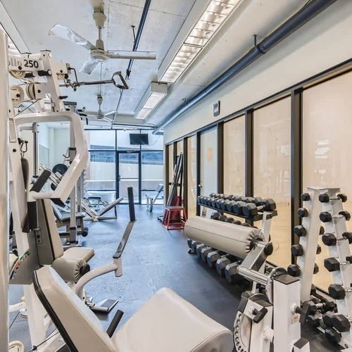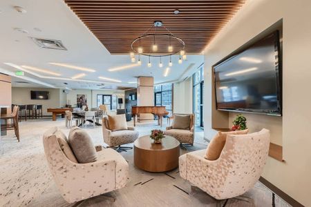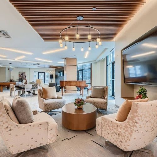 • A large community room with a piano and pool table, community grill, gym, outdoor track, basketball, tennis, and racquetball courts.