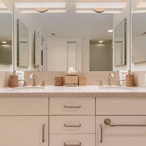 • Beautifully updated bathrooms with high-end finishes and tiled shower walls.