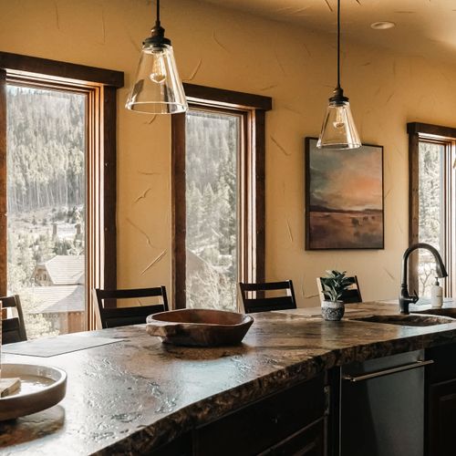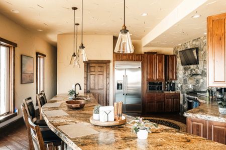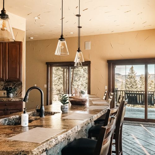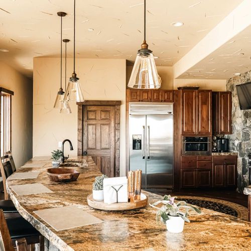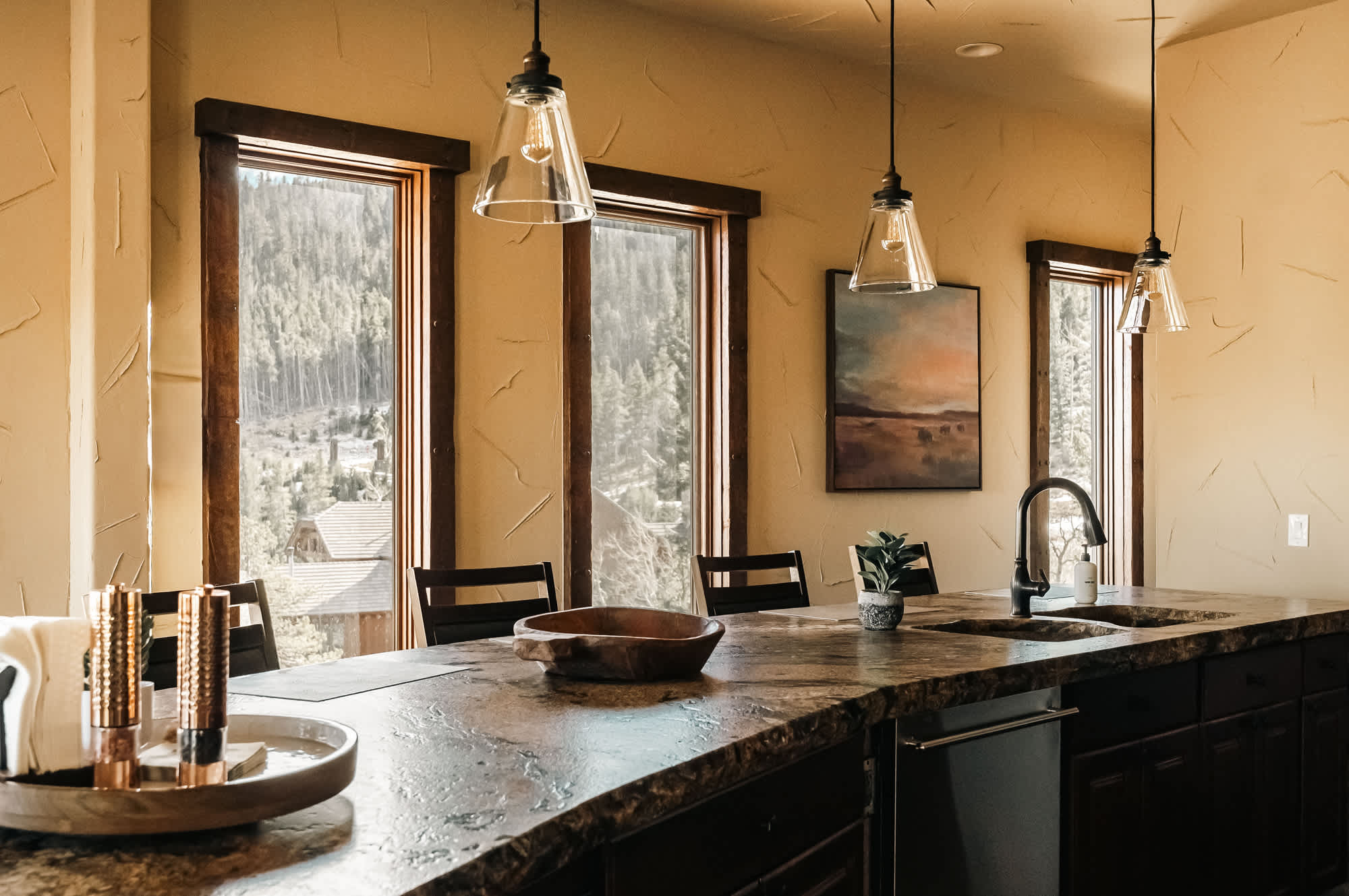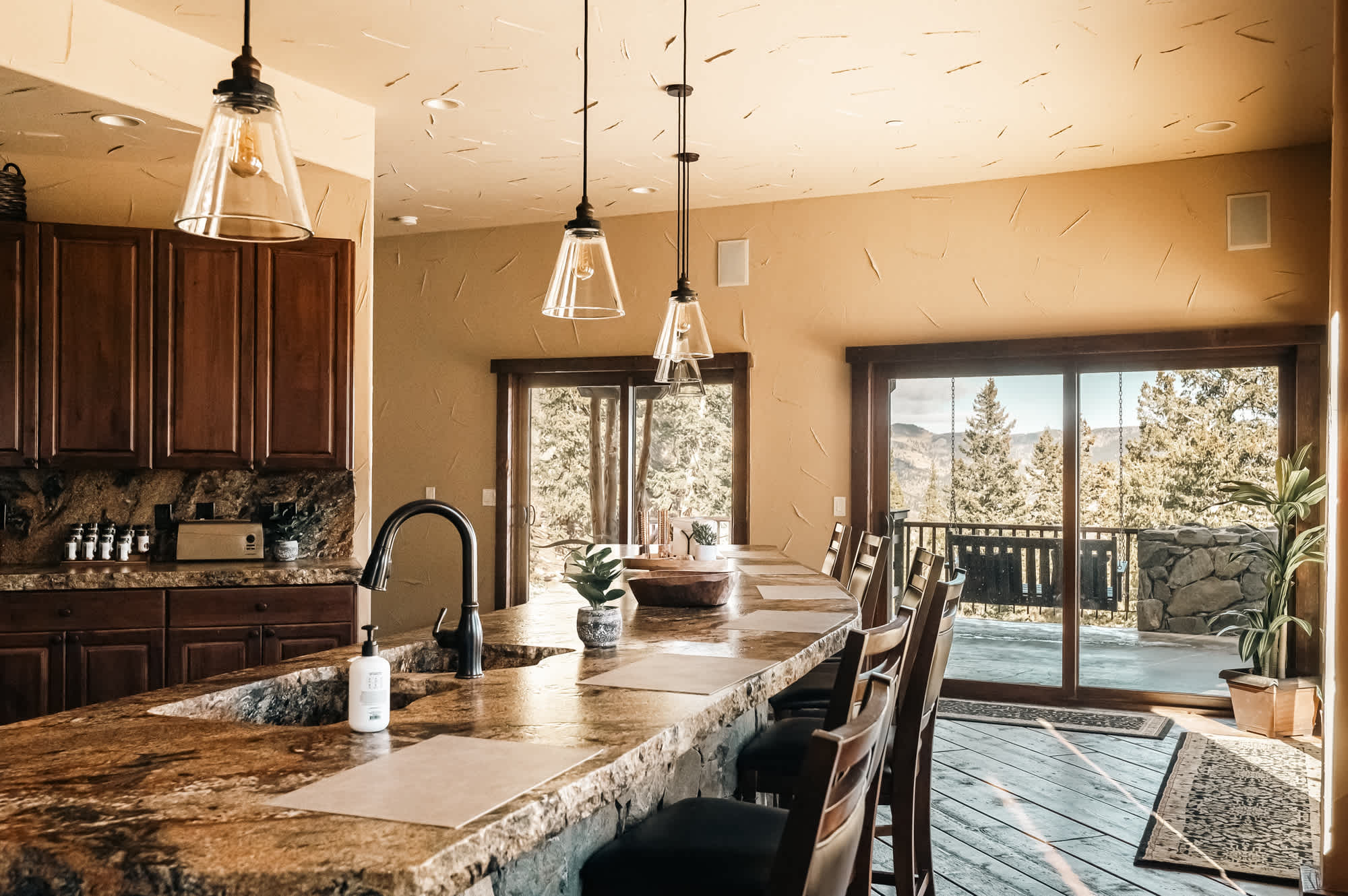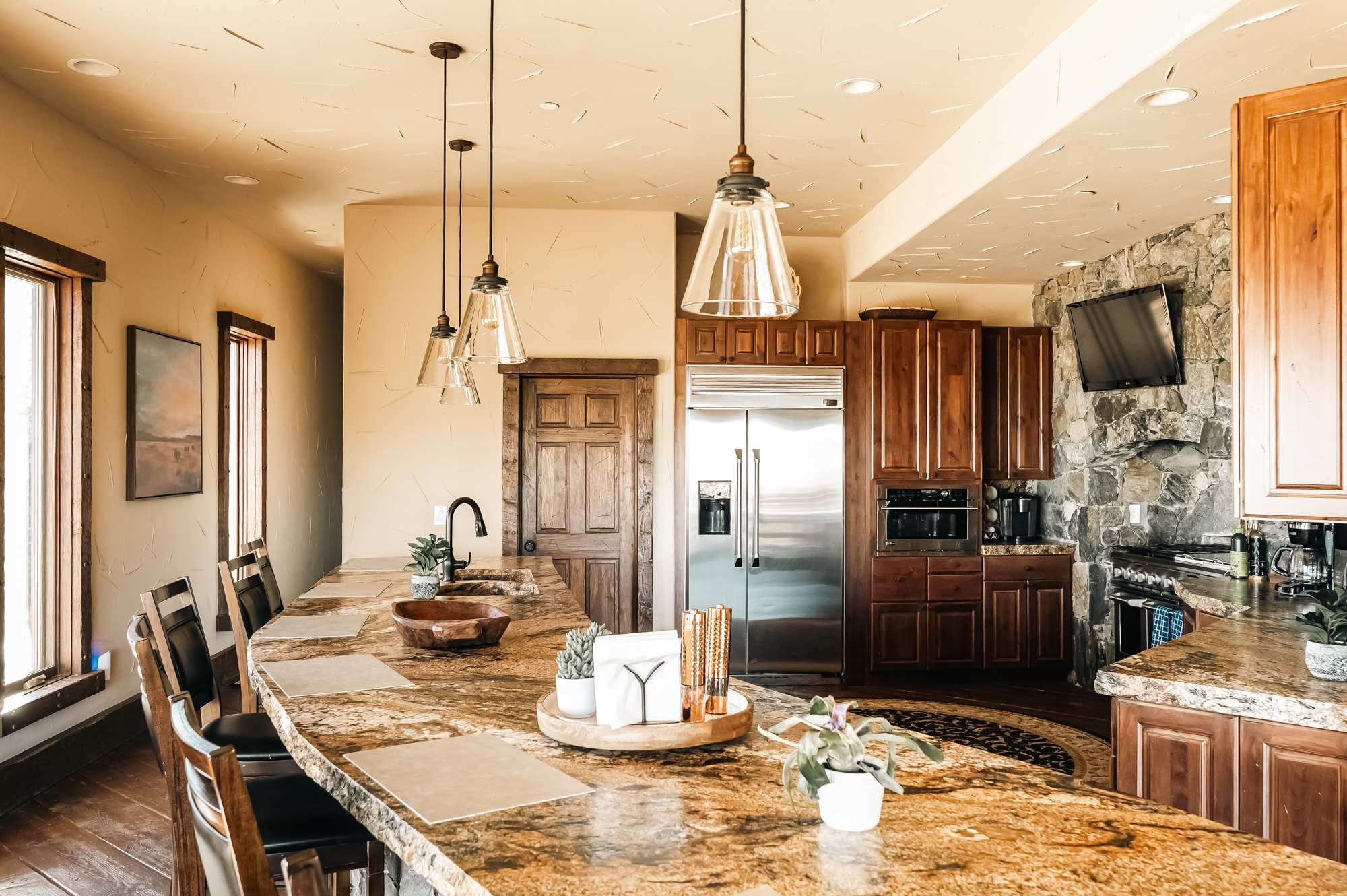 - Massive island with bar seating (perfect for coffee, cocktails, or casual meals)