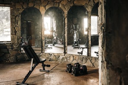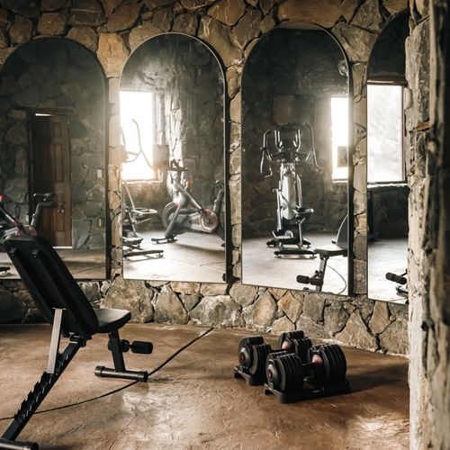 - Gym located across from the garage (accessible by walking outside) with workout equipment, including a stairclimber and Peloton bike (must use your own account)