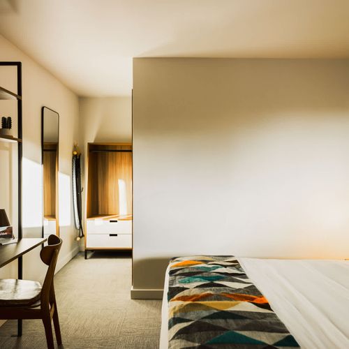 Experience a piece of Denver history in this beautifully restored king room at the newly reimagined La Vista Motel.