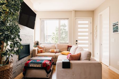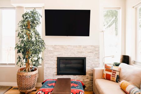 • Cozy living room with gas fireplace and smart TV