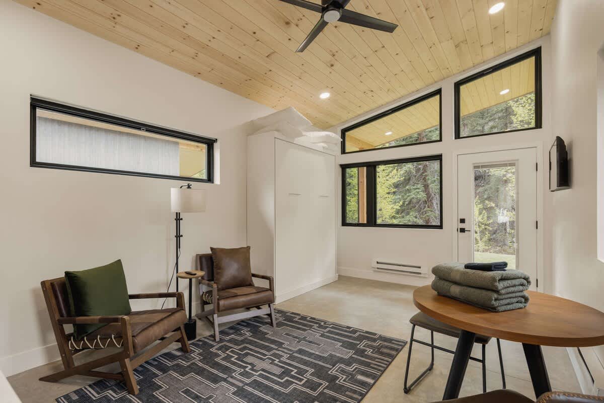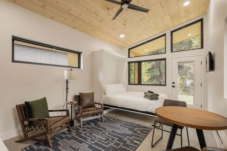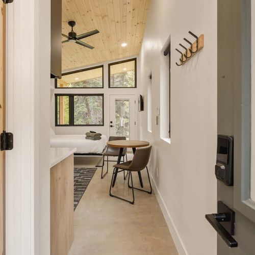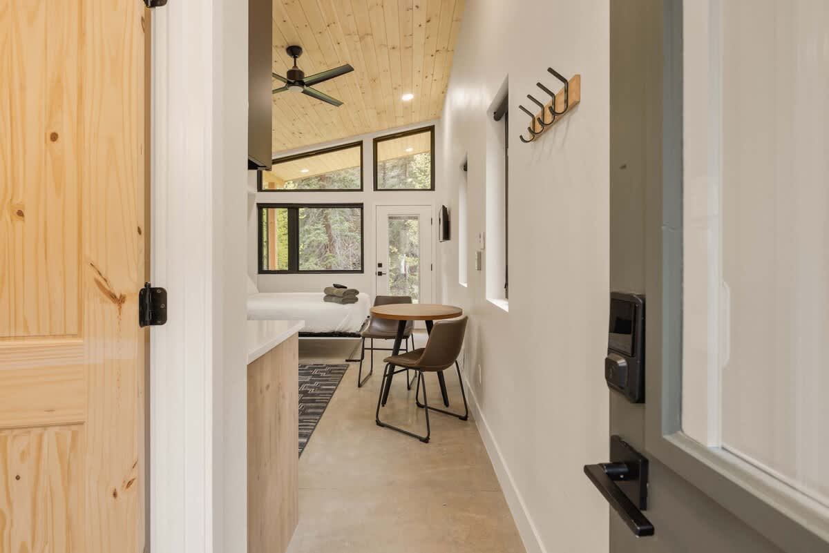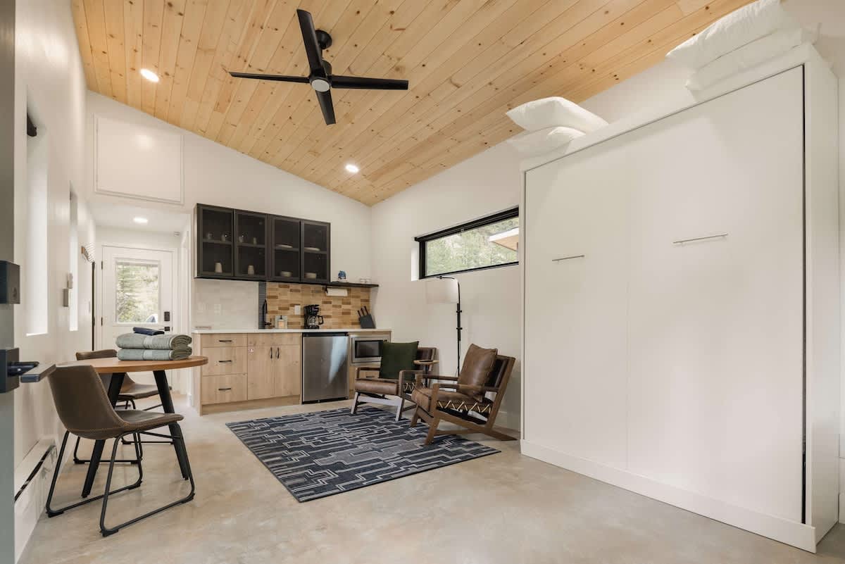 Welcome to The Compass Rose Studio at LostFork Basecamp—your serene hideaway in Grant, Colorado. This cozy studio for two features a full murphy bed, modern kitchenette, private bathroom, and its own personal hot tub for soaking under the stars. Surrounded by pine trees and crisp alpine air, it’s the perfect place to slow down and reconnect with nature. Explore nearby trails, fish in Geneva Creek, or unwind beneath the night sky—all just off scenic Guanella Pass.