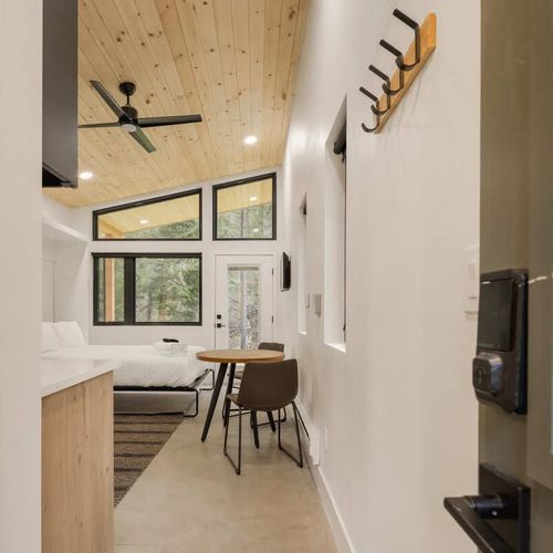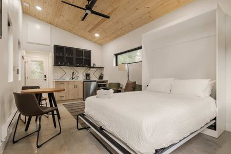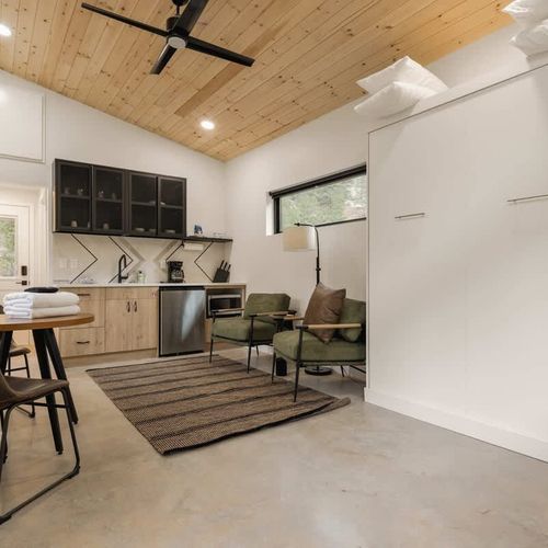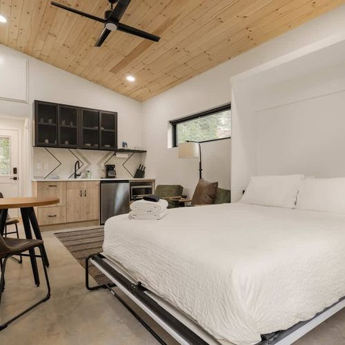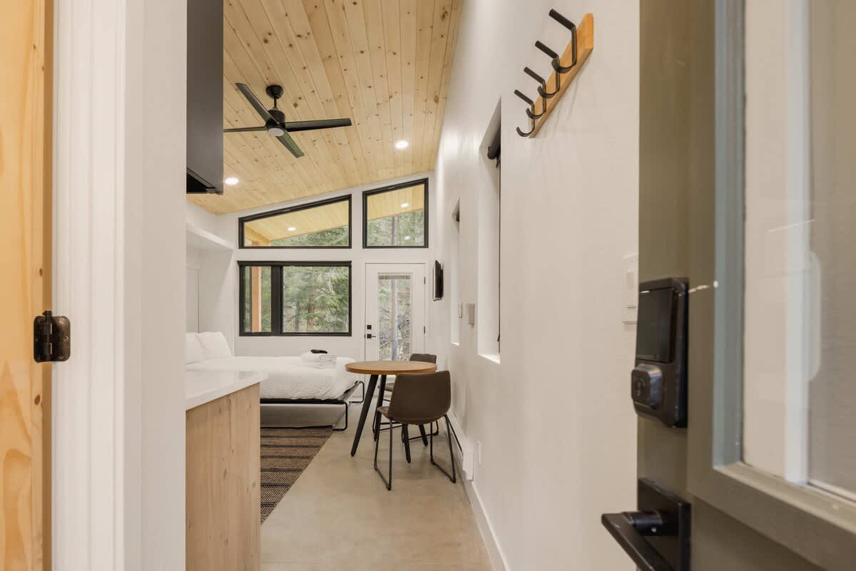 Welcome to Cross Country Studio at LostFork Basecamp—your serene hideaway in Grant, Colorado. This cozy studio for two features a full murphy bed, modern kitchenette, private bathroom, and its own personal hot tub for soaking under the stars. Surrounded by pine trees and crisp alpine air, it’s the perfect place to slow down and reconnect with nature. Explore nearby trails, fish in Geneva Creek, or unwind beneath the night sky—all just off scenic Guanella Pass.