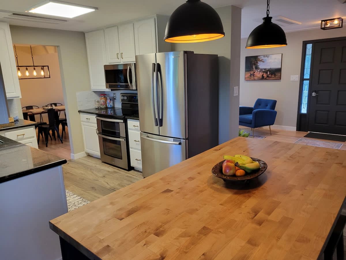 • Huge farmhouse dining table (seats 16)