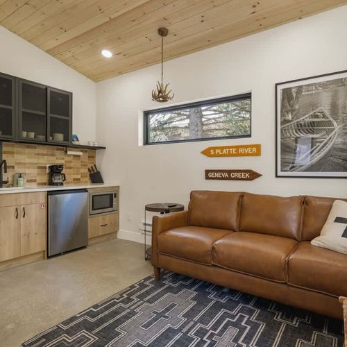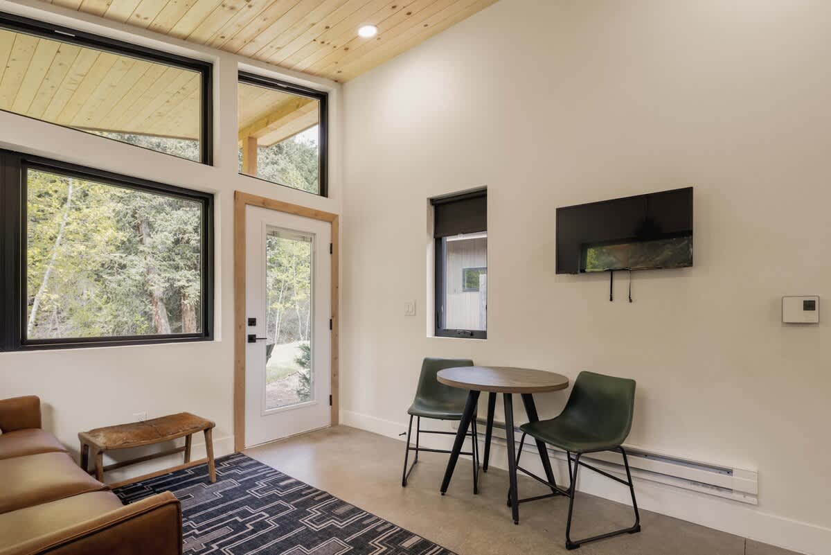 Welcome to The River Run at LostFork Basecamp—your cozy mountain escape in Grant, Colorado. This one-bedroom cabin sleeps 4 with a queen bed and sleeper sofa, and includes a private hot tub, modern kitchenette, and full bathroom. Guests have access to a community center with two creekside saunas, a cold plunge, grill, smoker, and yard games. Just off scenic Guanella Pass, it’s the perfect mix of comfort and Colorado adventure.