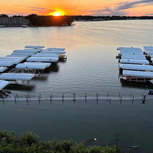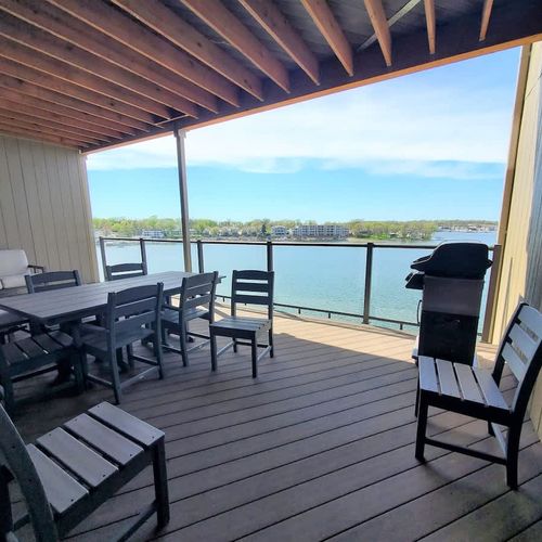 Welcome to Sunset Shores at Bridges Bay Resort! This spacious 4 BR, 3 Bath condo with stunning East Lake views sleeps 11 and includes 6 daily waterpark passes. The condo is fully equipped with kitchen essentials, a breakfast bar, and a large dining table, perfect for gatherings. Step out onto a private deck with ample seating or enjoy the cozy living room with a fireplace and large windows.Minutes away from Arnolds Park, dining, and shopping, plus resort amenities like pools, gym, and an arcade.